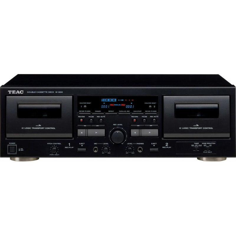 La lecture et l'enregistrement peuvent être effectués sur cassettes de type Normal (Type I) et Chrome (Type II), mais des cassettes de type Metal (Type IV) peuvent également être lues, la platine cassette Teac W-1200 intégrant un système de détection automatique du type de cassette inséré dans chaque tiroir. La lecture audio bénéficie d'un système de réduction de bruits développé par Teac qui propose un traitement équivalent au système Dolby B NR. Chaque deck de la platine cassette Teac W-1200 dispose par ailleurs de son compteur numérique à quatre chiffres et d'une fonction retour à zéro : d'une simple pression sur la touche Return to Zero, la bande est rembobinée pour revenir à la position "0000" du compteur. Enfin, la lecture répétée est possible (la lecture s'arrête après 20 répétitions), et le lecteur TAPE1 dispose d'une fonction pitch control (contrôle de la vitesse de lecture).