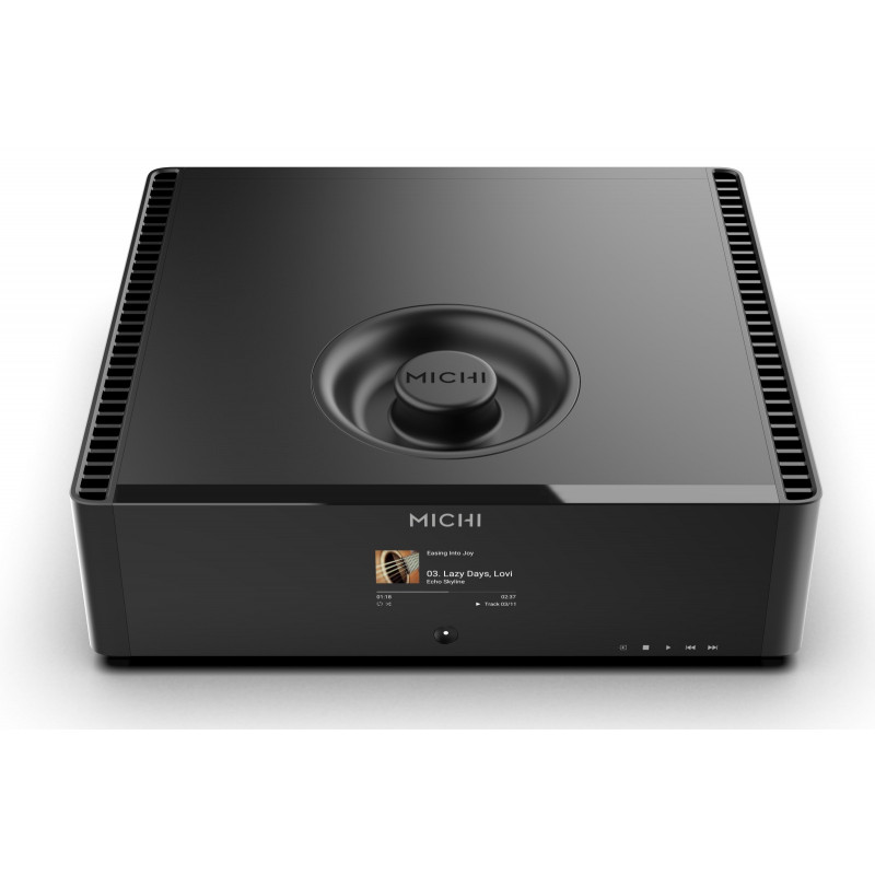 Le Michi Q5 Transport DAC est un lecteur CD haut de gamme à chargement par le haut, équipé d’un DAC ESS ES9028PRO 8‑canaux, de sorties XLR/RCA, de sorties numériques (coax/optique), d’entrées USB‑B (MQA/DSD), optique/coaxiale, d’un écran TFT, RS232/Ethernet, le tout dans un boîtier CNC massif. Un concentré audiophile.