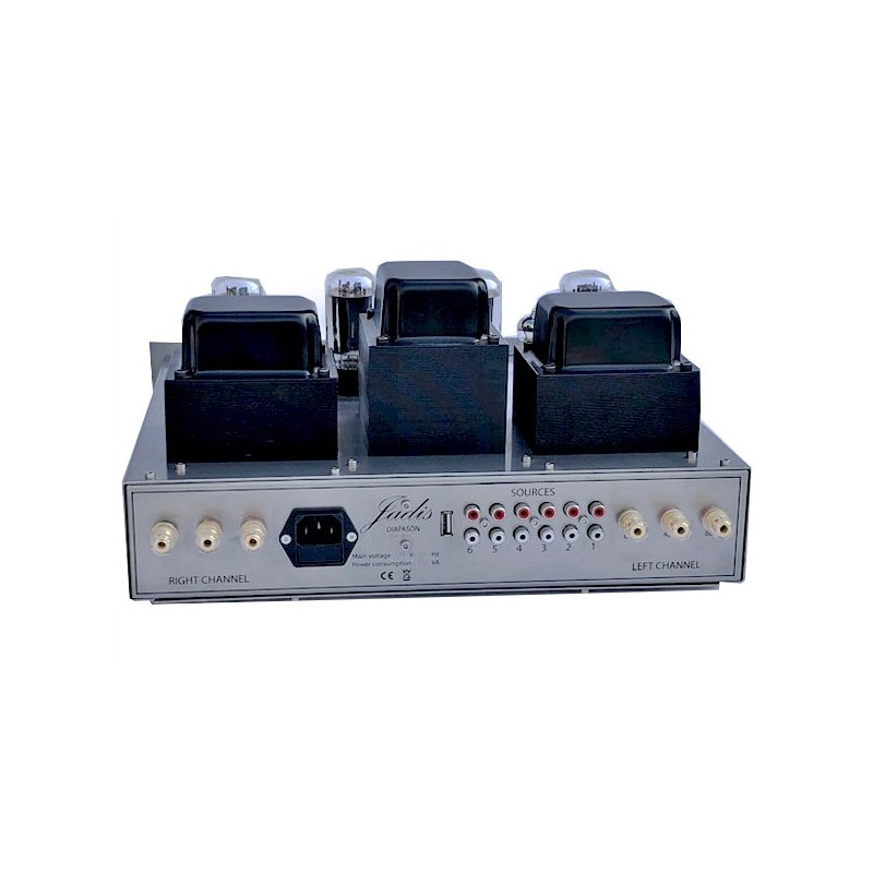L'amplificateur stéréo Jadis Diapason utilise des triodes ECC83 et ECC82 (3) pour son étage d'entrée, afin de donner au son de la source (CD, ordinateur, baladeurs, etc.) une tonalité chaleureuse et naturelle. Combinés aux tubes de puissance 6L6, cet ampli délivré un son attachant et réaliste. La puissance de 2x15 W, au demeurant modeste, en paraît en réalité bien davantage tant la restitution est animée. Par comparaison, un ampli à transistors de 2x100 watts ne semblerait pas plus puissant.