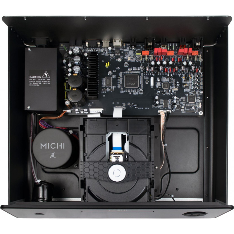 Le lecteur CD Michi Q430 inaugure la série Prestige du fabricant japonais avec un modèle haut de gamme assurant la lecture des CD du commerce et des CD gravés. Son mécanisme de lecture est monté sur une structure flottante pour une stabilité exemplaire et s'associe à un DAC ESS Sabre ES9028PRO à 8 canaux assurant une conversion de très haute précision. Connecté au réseau via Ethernet, il peut récupérer de nombreuses informations sur les titres en cours de lecture, dont la jaquette pour l'afficher sur son écran couleur en façade.