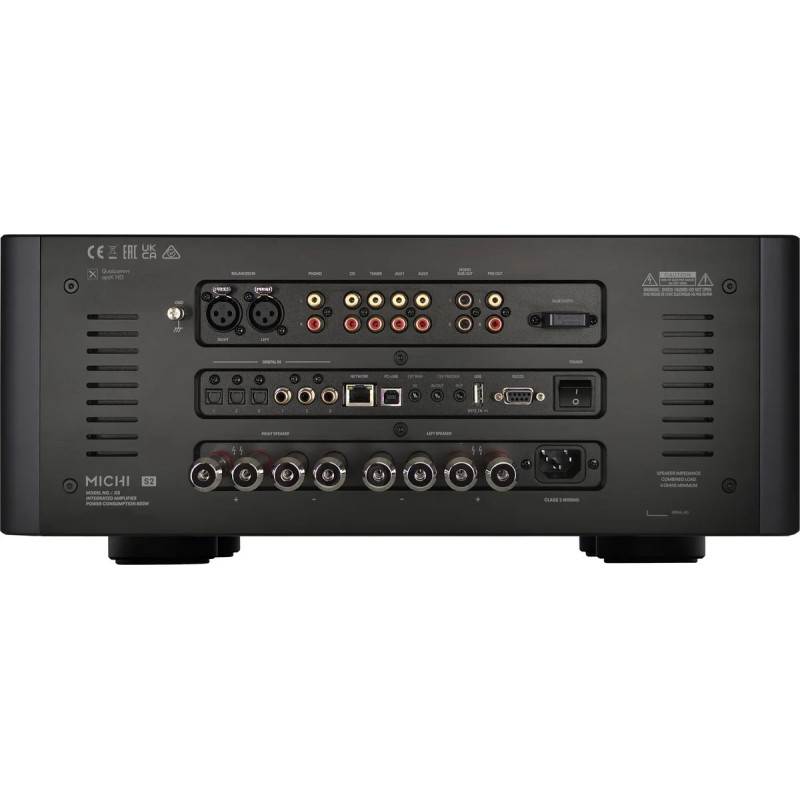 Le Michi X5 Series 2 est un amplificateur intégré stéréo de 350 W/8Ω et 600 W/4Ω, doté d’un DAC ESS 32-bit, d’un préampli phono MM, d’entrées XLR/RCA, d’un port USB-B pour fichiers haute résolution PCM/DSD/MQA, du Bluetooth aptX HD et d’un écran TFT avec vumètre numérique. Une référence audiophile sans compromis.
