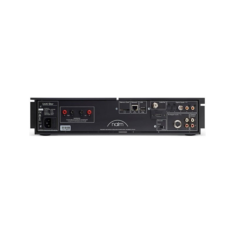 L'amplificateur stéréo Naim Uniti Star développe jusqu'à 2x70 Watts et dispose d'un lecteur de CD et de fonctions de streaming audio dernier cri, compatibles avec l'écoute des musiques dématérialisées et des services de musique en ligne.