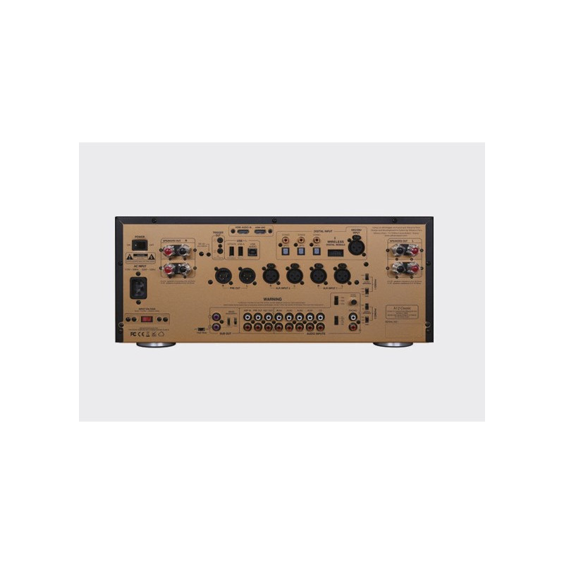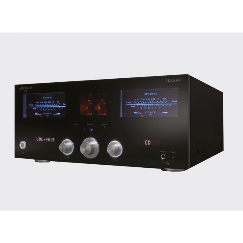 L'Advance Paris A12 Classic est un amplificateur intégré avec convertisseur N/A intégré. L'amplificateur a une puissance de 270W par canal. En outre, l'Advance Acoustics A12 Classic dispose des entrées HDMI ARC, HDMI Audio, AES-EBU, 2x XLR line-in, 1x XLR line-out, Phono MM/MC, 2 prises casque et une connexion USB.