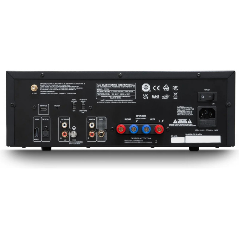 La connectique de l'ampli Nad C3030 propose l'essentiel pour y associer des sources modernes comme un téléviseur en HDMI eARC, mais également des sources plus traditionnelles, dont une platine vinyle grâce à l'entrée phono. L'ampli NAD C 3030 intègre une connexion Bluetooth pratique et universelle, permettant de diffuser facilement de la musique sans fil depuis un smartphone, une tablette ou un ordinateur. Idéale pour un usage quotidien, cette connectivité sans fil permet d’accéder instantanément à ses bibliothèques musicales, services de streaming ou fichiers locaux.