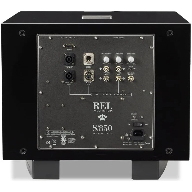 Fidèle à sa philosophie, REL privilégie les filtres analogiques afin de préserver le naturel du signal audio. Le REL S/850 utilise exclusivement des circuits analogiques pour ses entrées haut niveau (via connecteur Neutrik Speakon) et bas niveau (RCA et XLR), assurant une intégration fluide avec les enceintes principales. Cette approche permet de récupérer l’intégralité de la signature sonore de l’amplificateur principal, offrant ainsi une fusion parfaite entre le caisson et le système audio existant.