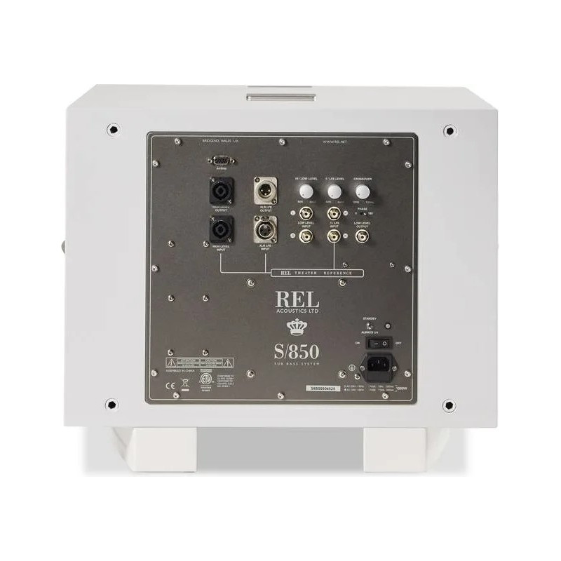 Dans un système home-cinéma ou polyvalent, le REL S/850 autorise l’utilisation simultanée des entrées haut niveau et LFE (.1), assurant une restitution musicale toujours cohérente et une reproduction cinématographique spectaculaire. Cette double connexion est une spécificité de REL, saluée pour sa capacité à enrichir à la fois la musique et les effets spéciaux sans compromis.