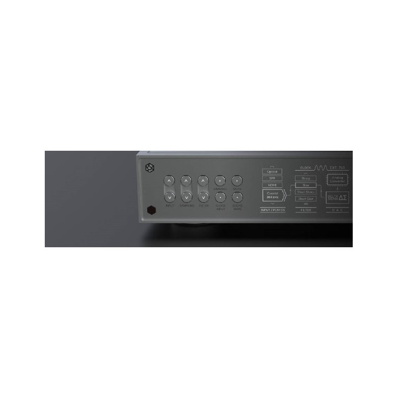 supporte jusqu'à 32 bits/768kHz, et le DSD prend en charge jusqu'à DSD512. En outre, le filtre numérique offre six caractéristiques différentes, types de réponses impulsionnelles, permettant aux utilisateurs de sélectionner en fonction de leurs préférences. Ces deux caractéristiques peuvent être facilement configuré à l'aide du bouton situé sur le côté gauche de la face avant, et les changements sont instantanément réfléchie sur l'écran caché sans délai.